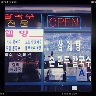 It was chilly in the restaurant, whose main patrons were Korean businessmen. The lone woman filling all stations in the front of house and I suspect the proprietor came out and put her sweater on my loving compadre. This is not the first time we have walked in to a restaurant and he has been mothered by the matriarch of the establishment. In Boulder, Colorado, recently, the proprietress of the also-spectacular Ras Kassa's Ethiopian restaurant fed my LC with her hands from our dish of Ethiopian food.